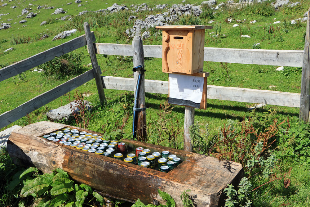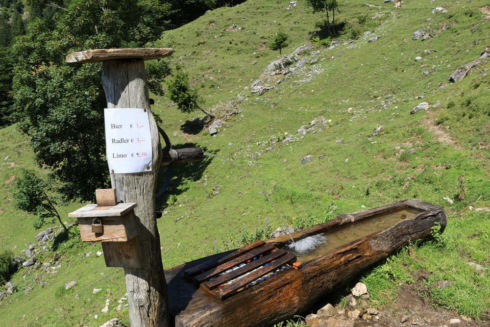 De Kaiser Hochalm is een alm op ongeveer 1400 meter hoogte. Het is hier heerlijk rustig, want er is verder niks te beleven! We leggen onze bezwete kleren te drogen op een steen en eten van onze lunch op een bankje in de schaduw. Ondertussen genieten we van het uitzicht op machtige bergtoppen als de Großglockner en Großvenediger. De almhutten lijken allemaal gesloten te zijn, maar als je wilt kun je wel weer een ijskoud blikje drinken kopen, net als zojuist bij Wegscheid Hochalm. Na een lange pauze komen we weer helemaal bij!