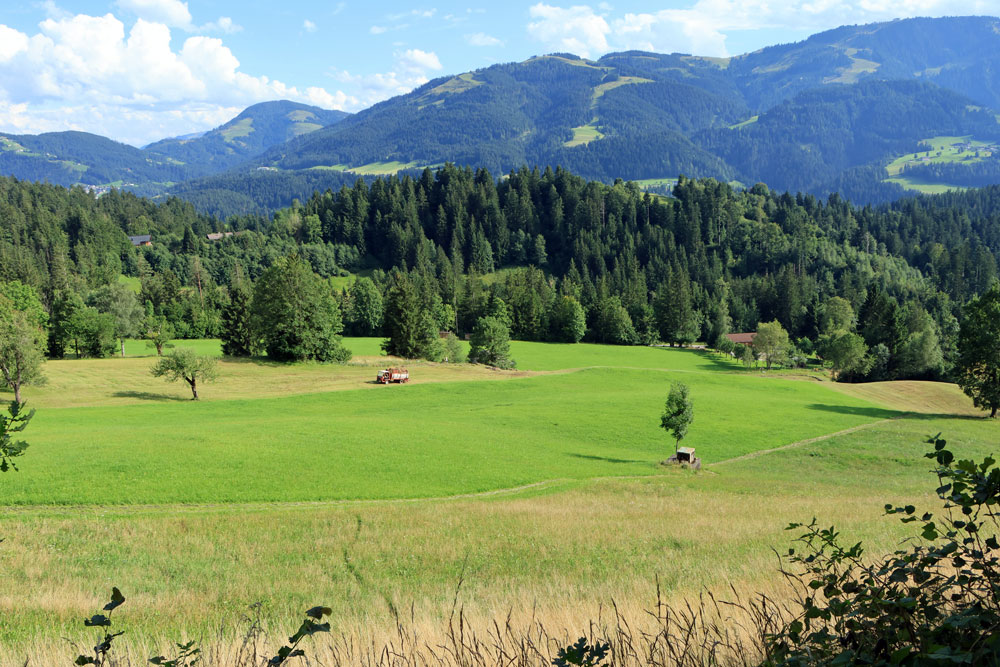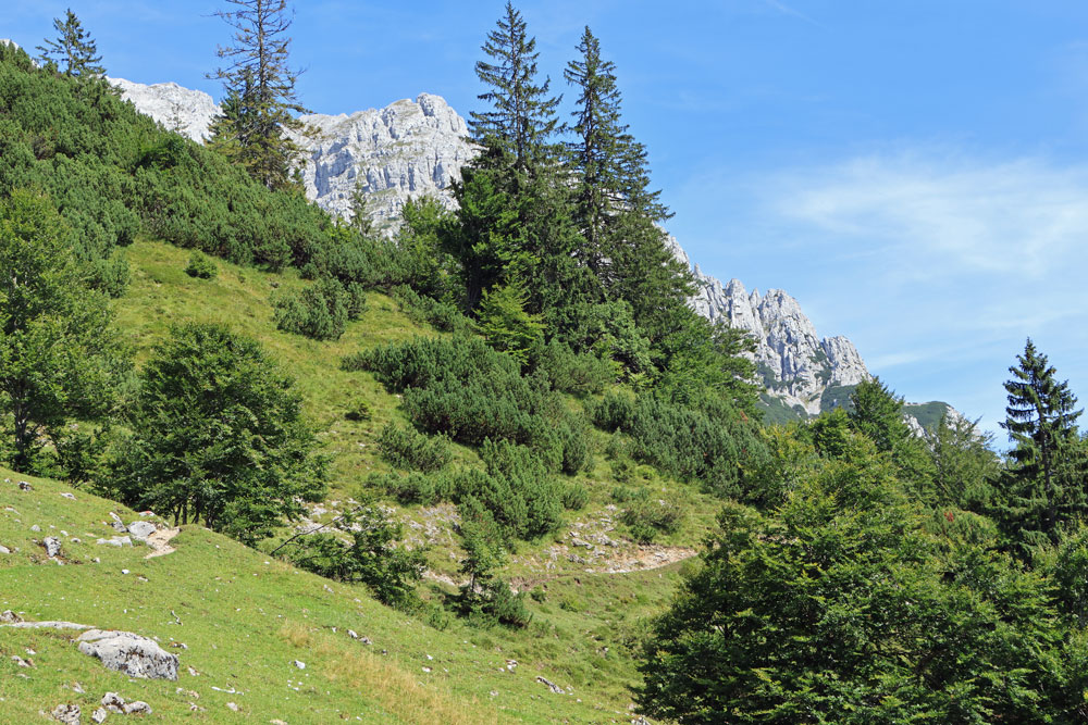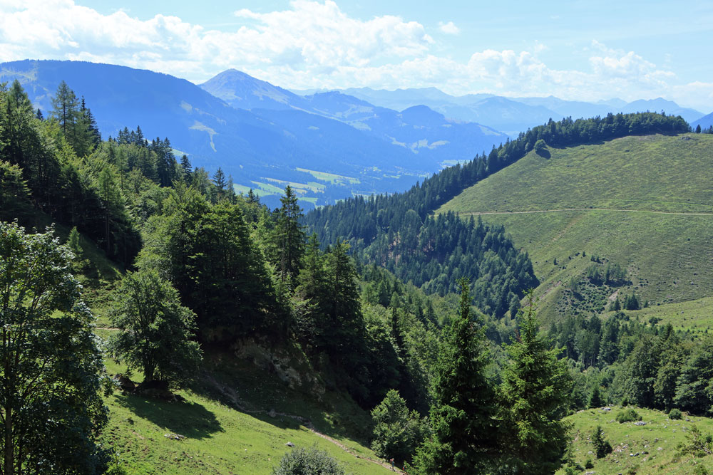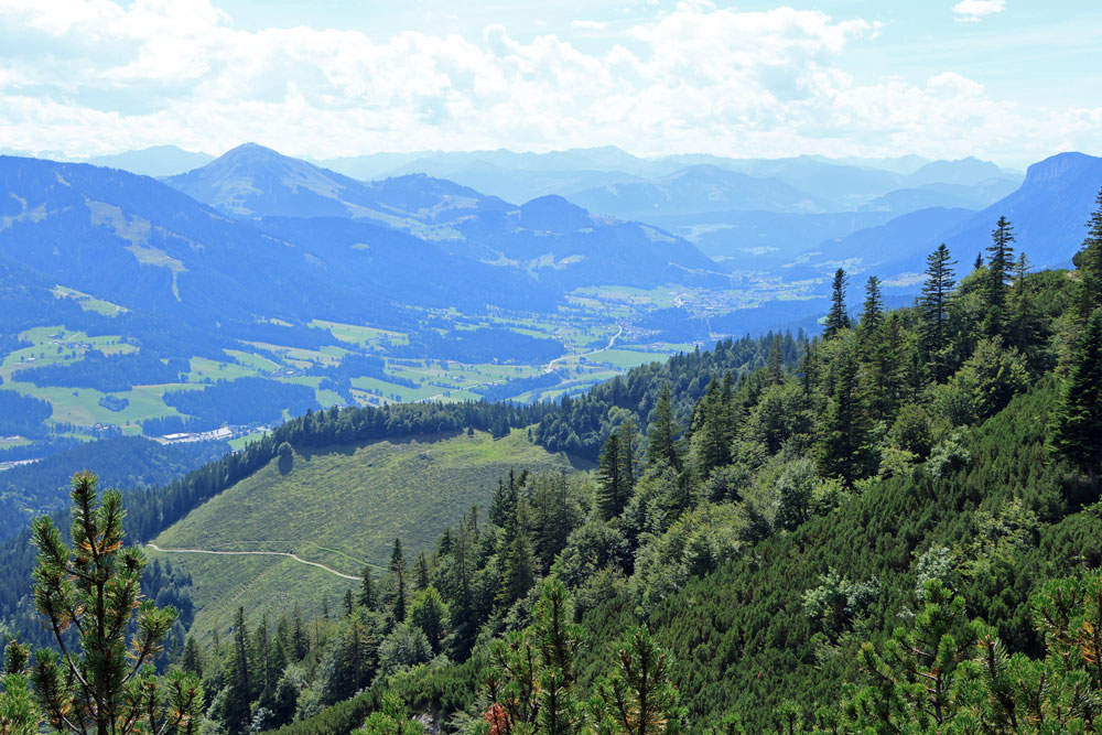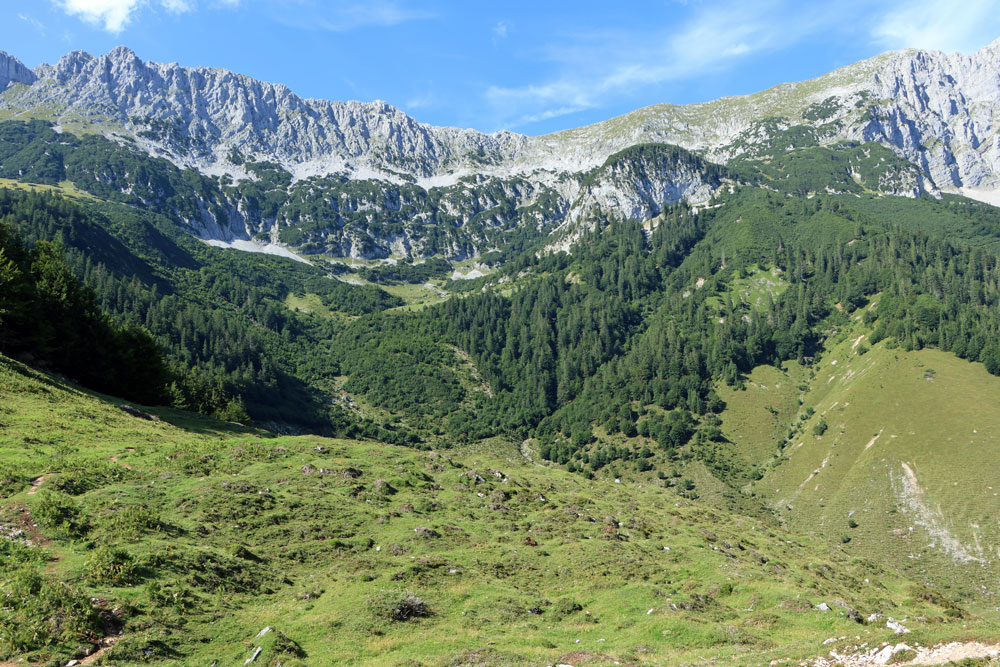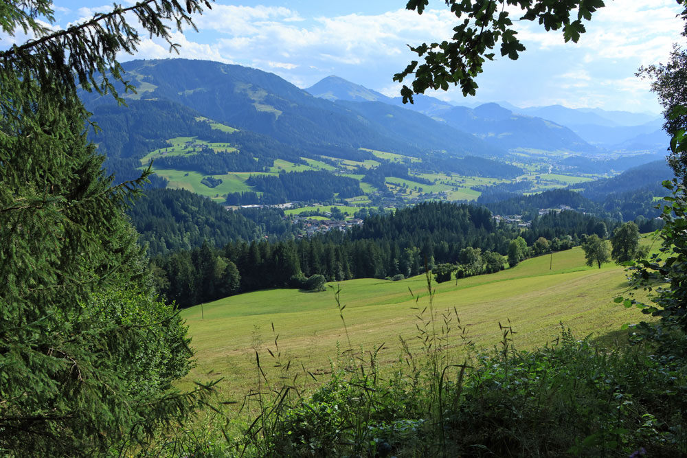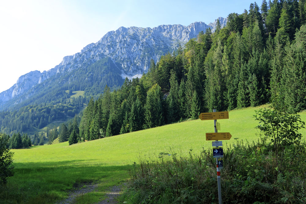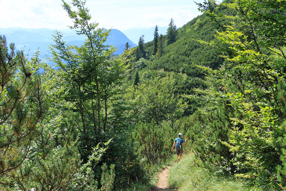 Na het uitkijkpunt Seilabodenkreuz gaat de afdaling verder. Bijna direct na Seilabodenkreuz passeren we de Kaiser Niederalm om vervolgens door het bos verder af te dalen naar Schießling. De uitzichten tijdens de afdaling zijn prachtig, vooral als we dichterbij Schießling komen. Het is hier zo ontzettend groen!