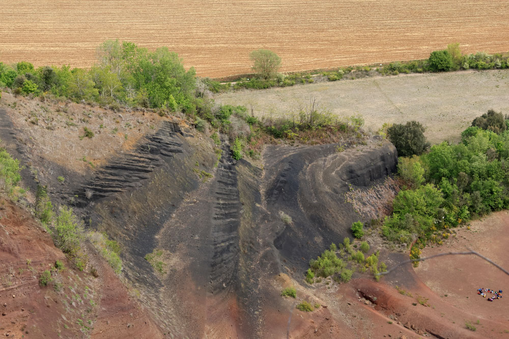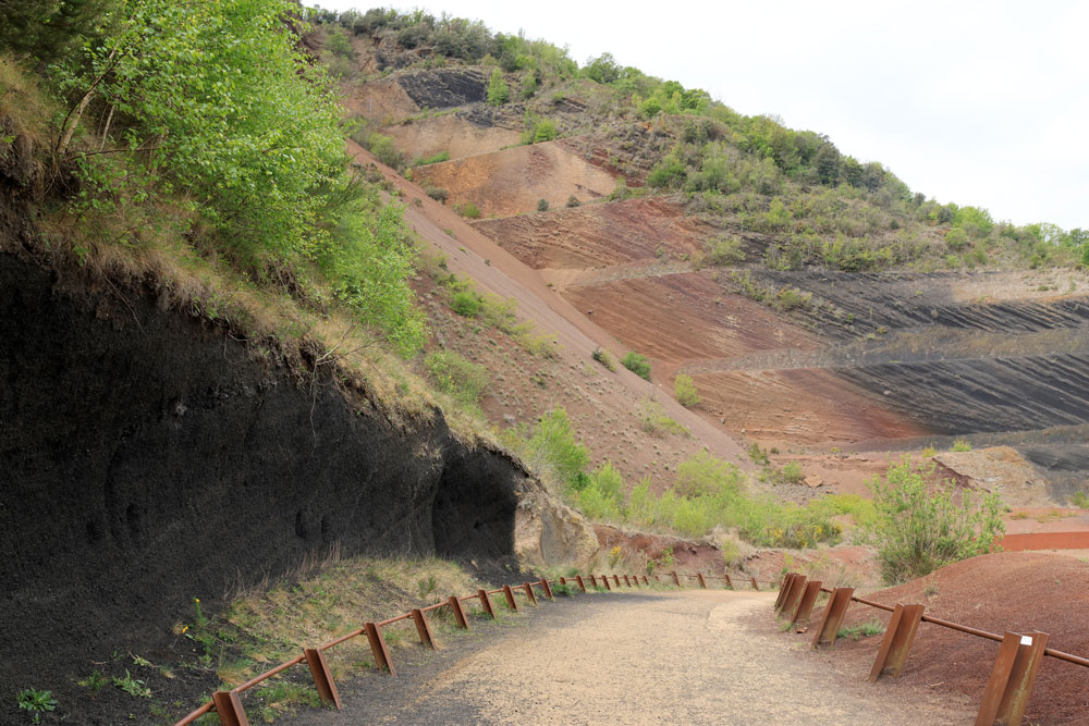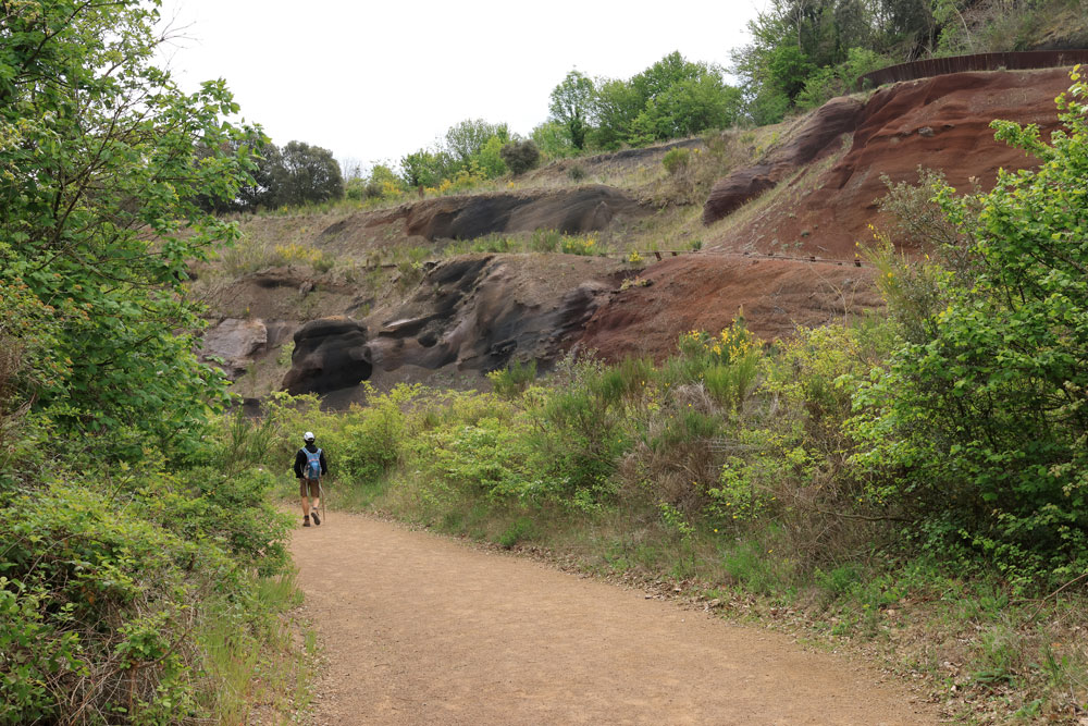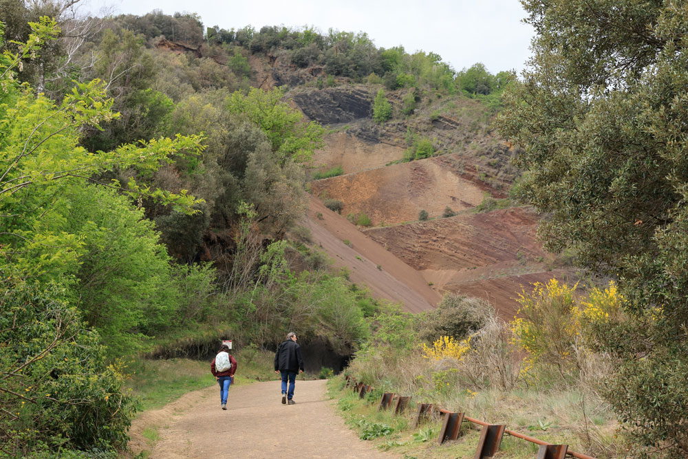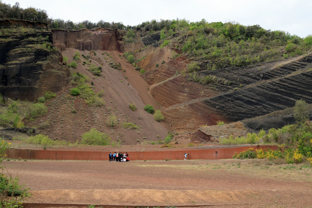 Het bospad brengt ons naar de bodem van de krater van Volcà de Santa Margarida. Het is goed te zien dat de krater een ronde vorm heeft, maar verder is het hier een stuk minder duidelijk dan net bij de vulkaan van Croscat dat we op vulkanische grond lopen. Middenin de krater is een kleine kapel te vinden, die overigens helaas gesloten is als wij er zijn. Net als de vele scholieren om ons heen genieten we hier van onze lunch. Daarna vervolgen we onze weg en volgen het wandelpad aan de linkerkant van de kapel om zo weer terug uit te komen bij de vulkaanrand. Op weg naar boven zien we toch wel wat vulkanisch gekleurde grond.