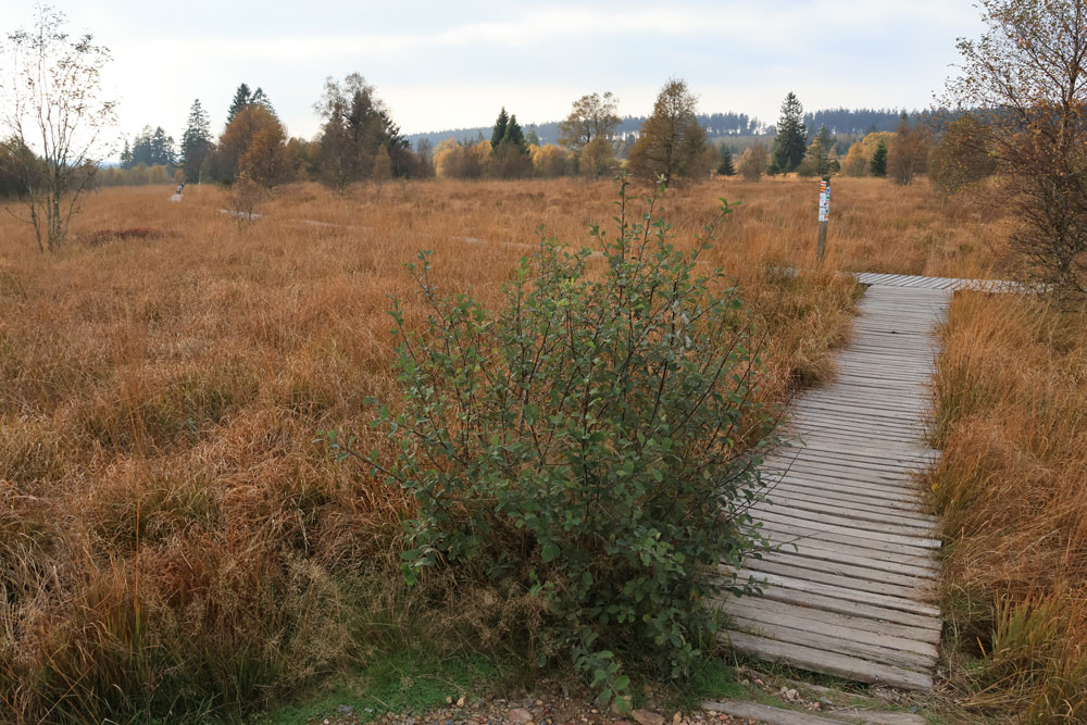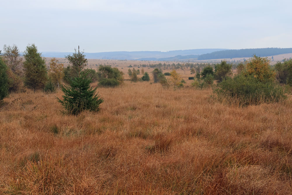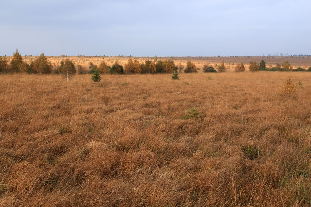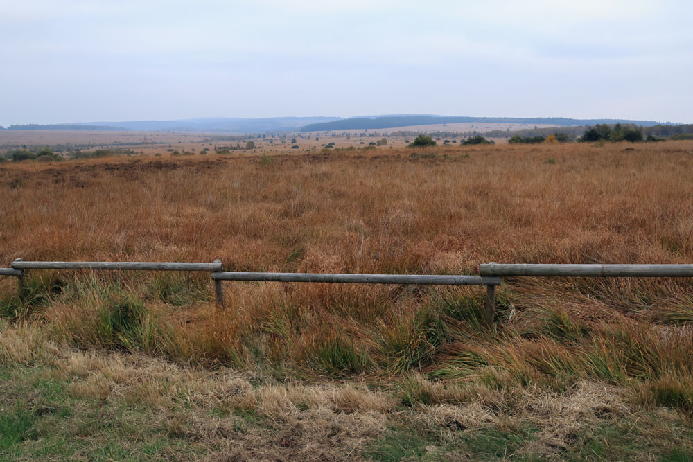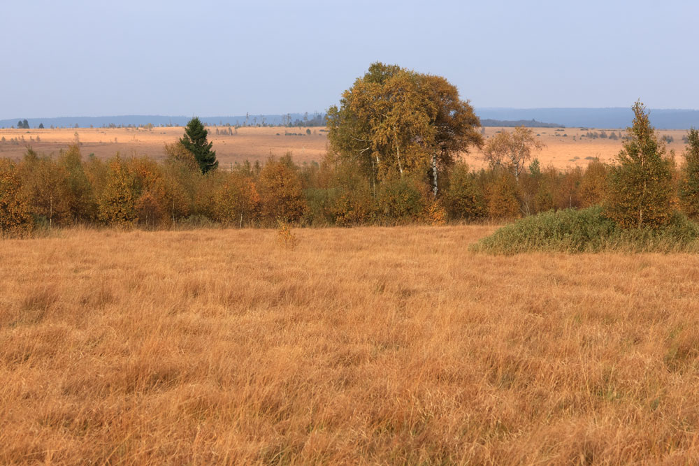 Wauw, wat is het hier schitterend! De uitgestrektheid en weidsheid is eigenlijk niet vast te leggen op foto’s en alleen te beleven als je erdoorheen wandelt. De vlonderpaden zijn meestal in hele goede staat, heel wat anders dan sommige vlonderpaden bij het Veen van Malchamps. In de verte heb ik zicht op een soort eilandje van pijnbomen, Noir Flohay. Door het bruine landschap waan ik me soms net in Afrika en voor mijn gevoel zou ik zo in de verte een giraf kunnen zien lopen. Wat een verschil met alle bossen die ik normaal gewend ben in de Ardennen. In de winter is het hier ongelofelijk koud en kan de temperatuur wel tot -20 schieten. Het is een bijzondere ervaring om in het hart van de Hoge Venen langs deze uitgestrekte veenlandschappen te wandelen.