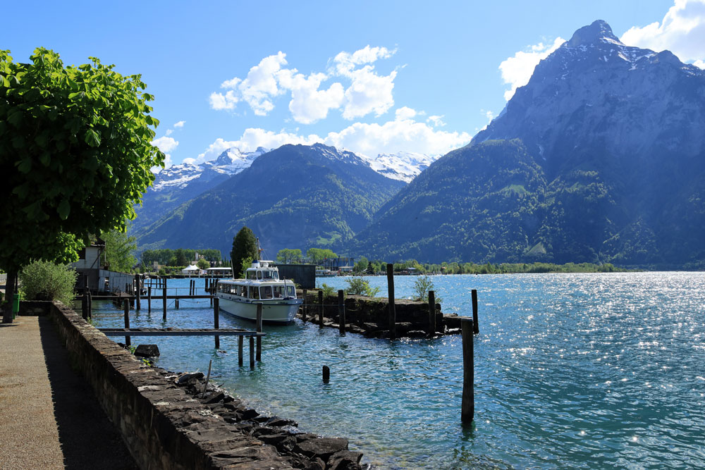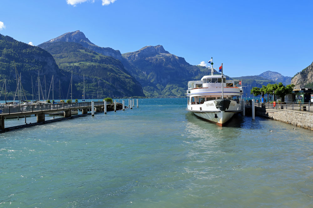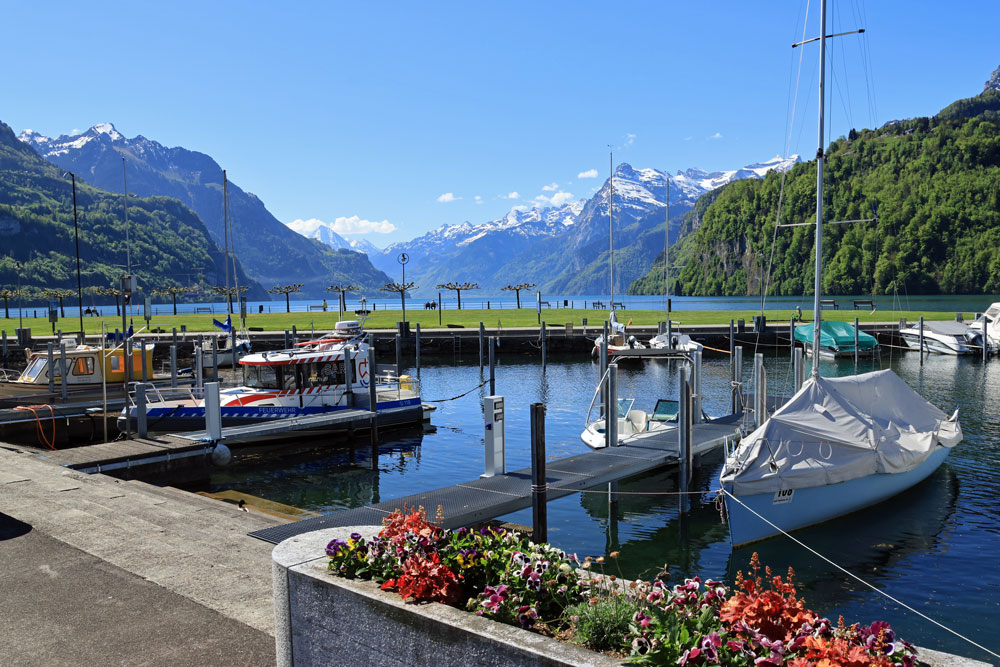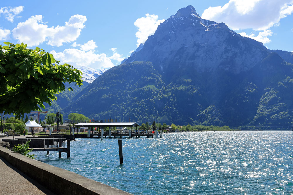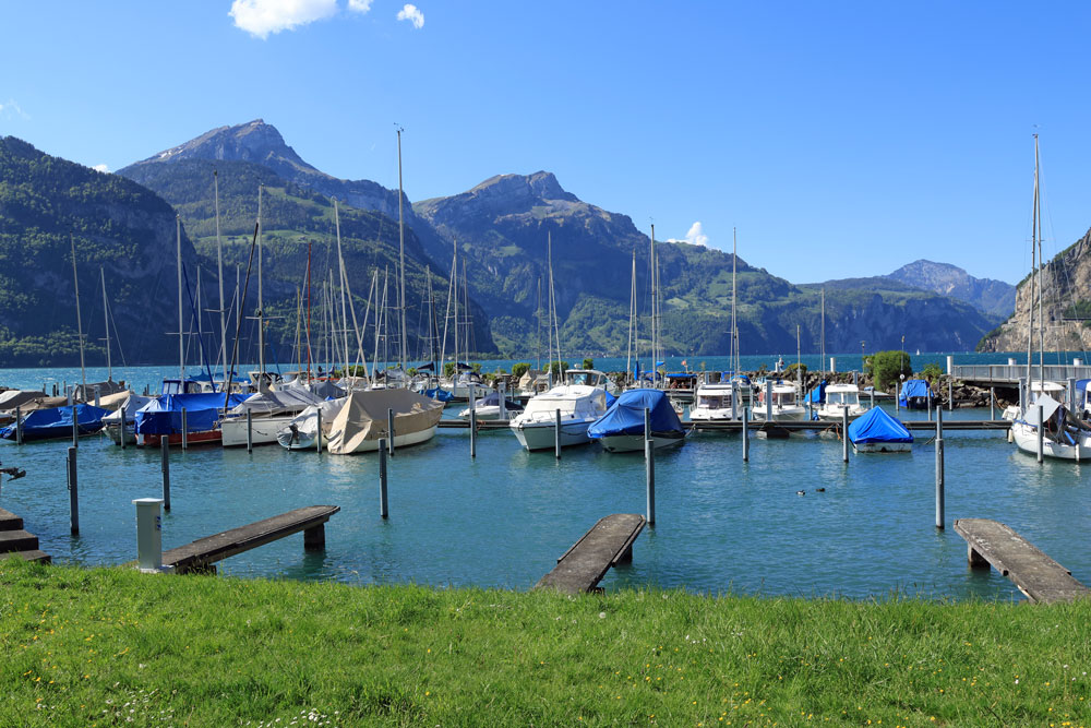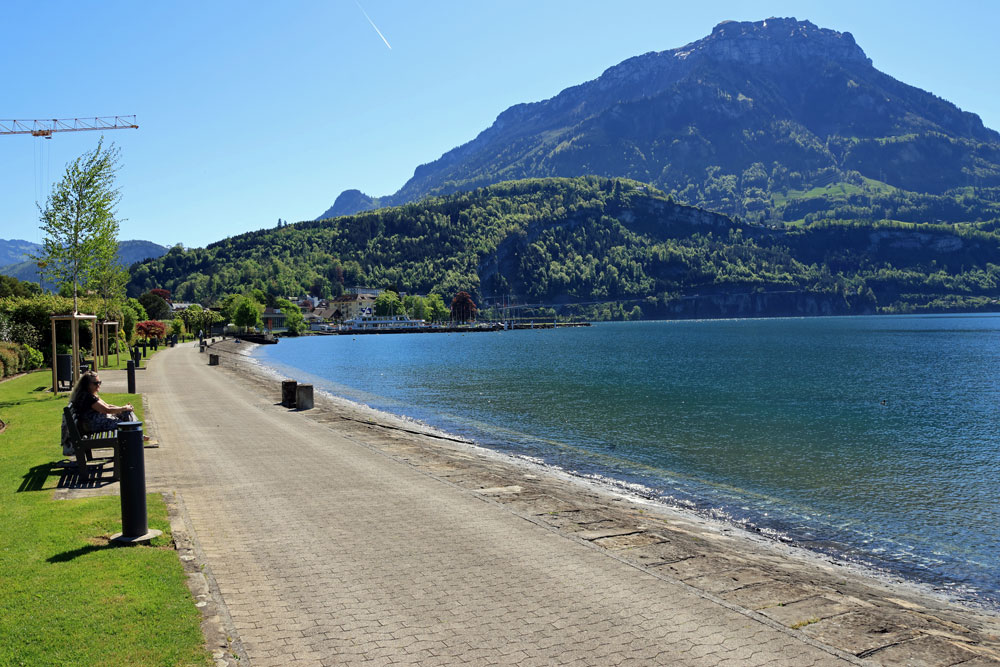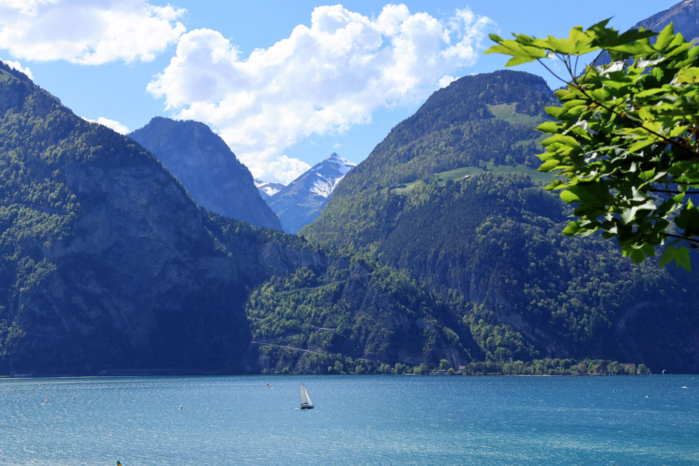 Gelukkig loopt de route niet langs de doorgaande weg, dus het is er niet enorm druk. Na heel wat kilometers wandelen kom ik eindelijk aan bij de haven van Flüelen. Het is ondertussen heel hard gaan waaien, dus het is gezellig druk op het meer met de zeilboten die van de wind profiteren. De haven is prachtig gelegen en ik geniet nog even op een bankje voor ik weer terug naar de camping reis. Ik vond de Weg der Schweiz: Etappe 3 en 4 allebei heel erg mooi. Beide heel anders van karakter en daardoor juist heel leuk. Echt een aanrader!